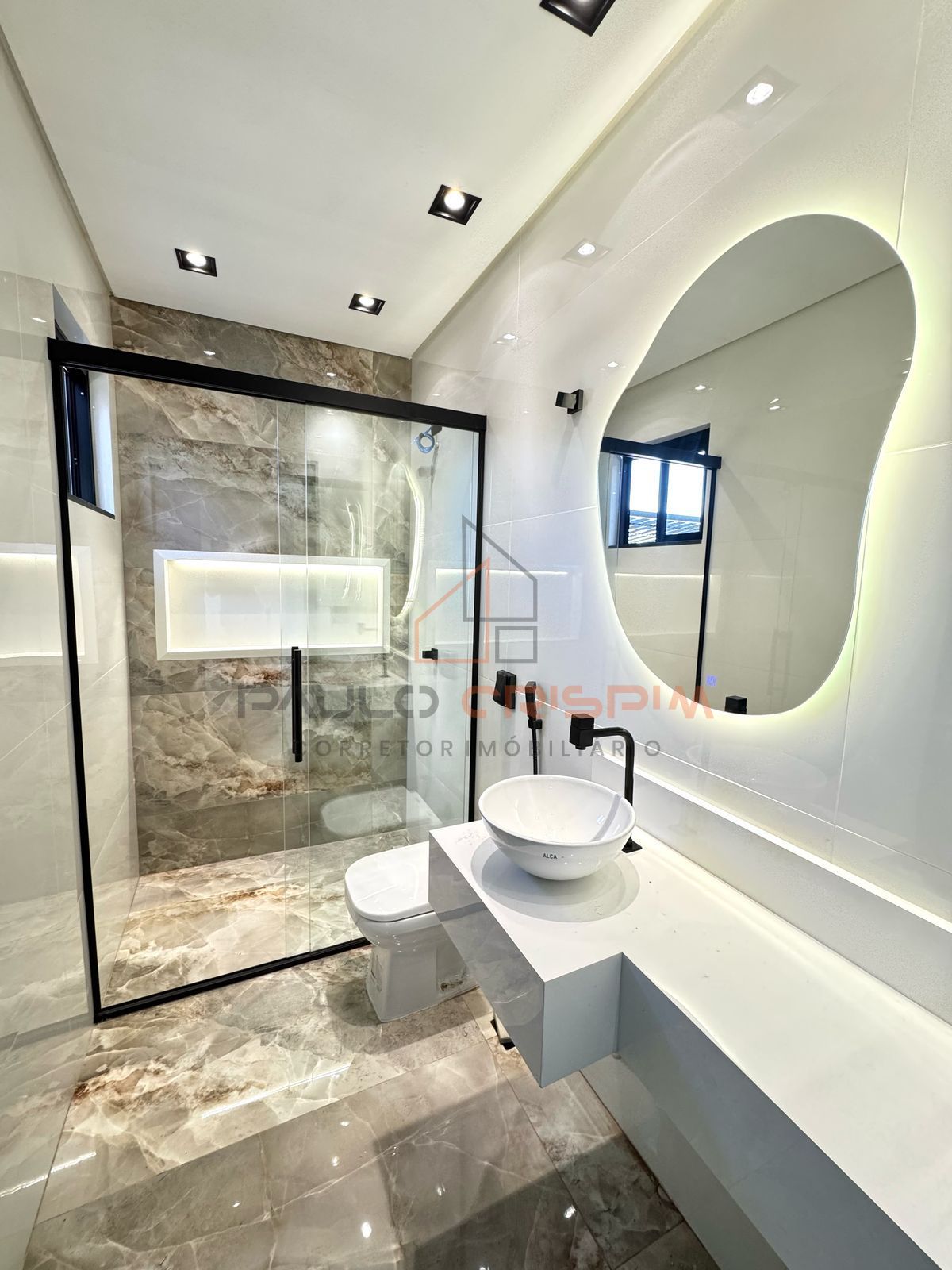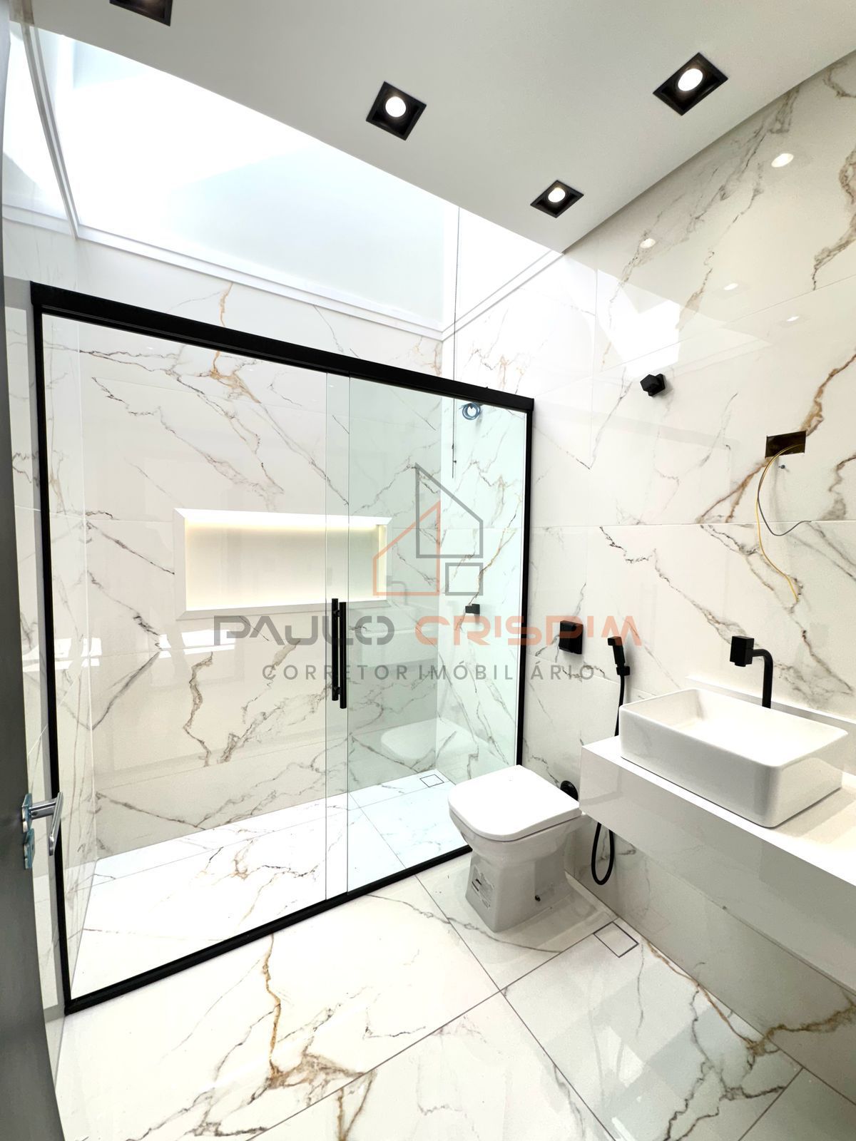 ▪️3 quartos sendo 1 suíte + BWC c/ Pia Esculpida em porcelanato, Nicho c/ Led e Box